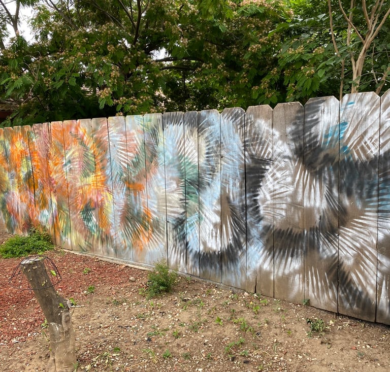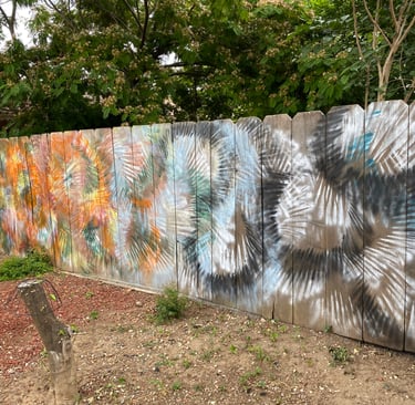 This photo is of our back yard fence. It depicts the seasons, Spring, Summer, Fall, and Winter.